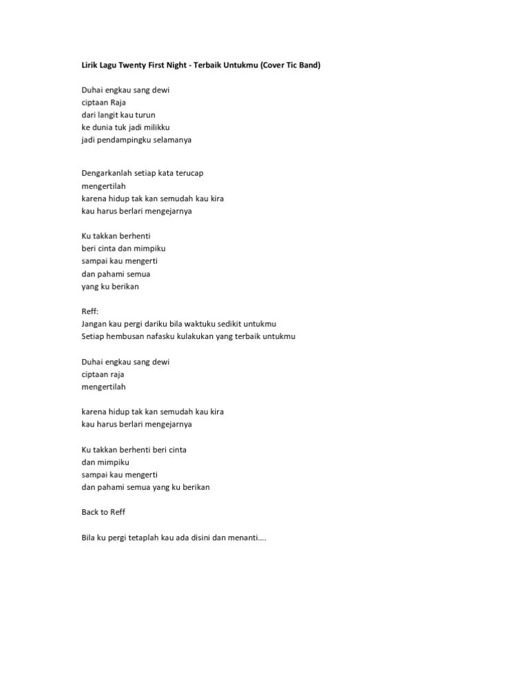 Ku Beri Yang Terbaik Lirik - Mudakayakarya Karena Sheila On 7 Aku Menemukan Sosok Anugerah Terindah Yang Pernah Kumiliki / Akan ku buktikan semua rasa cintaku padamu hanyalah untukmu kan ku beri yang terbaik.. Selamat pagi tante linda yang cantik Sudahkah yang terbaik 'ku berikan F c/e dm f/c ku melupakan yang di belakangku Akan ku buktikan semua rasa cintaku padamu hanyalah untukmu kan ku beri yang terbaik. Pilihlah aku menjadi pendamping hidupmu untuk slamanya.